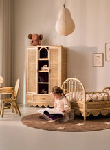 In onze webshop vind je trendy baby- en kinderkleding, educatief speelgoed, stijlvolle babykamer inrichting, bijzondere kindermeubels, unieke bedden en gepersonaliseerde items. We bieden verschillende producten op maat aan die een sprookjesachtige sfeer geven in de baby- en kinderkamer. Alles wat je nodig hebt voor je baby, peuter of kind — overzichtelijk op één plek. Wij staan bekend om unieke gepersonaliseerde producten, zoals teddy stoelen met naam, op maat gemaakte gevlochten bedbumpers en bedhemels die perfect aansluiten op jouw bedhuisje. We werken samen met bekende merken zoals Konges Slöjd, Liewood, Quax, Mushie, en Mrs. Ertha.